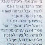 Thursday, December 31, 2020, 9:59 The GSS threatened a friend of Ahuvia Sandak, z”l, who participated in demonstrations protesting the Central Unit of the Yehuda and Shomron Police taking place throughout Israel in response to the death of the youth in a police car chase on December 21, 2020. The friend is a Shomron resident, married and has several children. On the day after the friend protested opposite the home of a detective from the Central Unit of Yehuda and Shomron Police who was involved with the accident in which Ahuvia was killed, he came to the shiva at the Sandak family’s home to console the family. As he was sitting with the mourners, a GSS agent phoned him. He disconnected the call and then immediately received threatening text messages from the same GSS agent. One of the messages: “It’s me again! I expected to receive a greeting from you upon my arrival, but apparently you’re still angry about our mutual past. As with our accepted practice in the past, I have my eyes wide open on you 24/7. For every false step/act of defiance/violent activity in which you take part, there will be a significant response from me (and you know that I am not all talk), so don’t even try! Today you have a lot to lose in life. So for the sake of your family and for your own sake, take care and beware! “Roni”” Honenu Attorney Moshe Poleski sharply criticized the threat and said “This is another example of persecution of hilltop youth. It is unacceptable that the General Security Service chases protest activists. Someone who participates in a protest in the evening should not find himself threatened the following morning by a GSS agent. This is against the law and against all logic in a democratic country. “The GSS must understand that they are the security service of a democratic country, and also right-wing activists have freedom of protest, freedom of thought, and the right to criticize the actions of the government.”